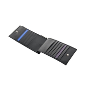 - With 14 dedicated card slots, this wallet is perfect for those who carry a mix of credit cards, loyalty cards, business cards, and transit passes. The vertical and horizontal alignment allows for quick identification at a glance.